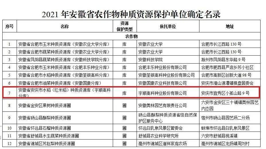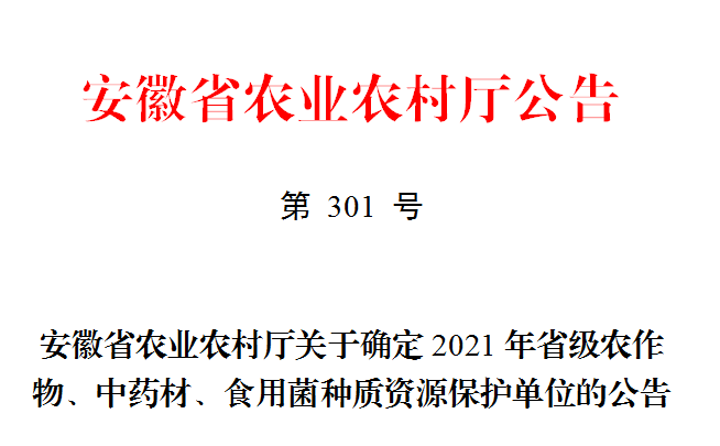 2021年安徽省農(nóng)作物種質(zhì)資源保護(hù)單位確定名錄